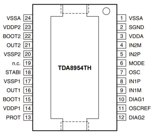 Amplificador de audio estéreo clase D. 2 x 210W.